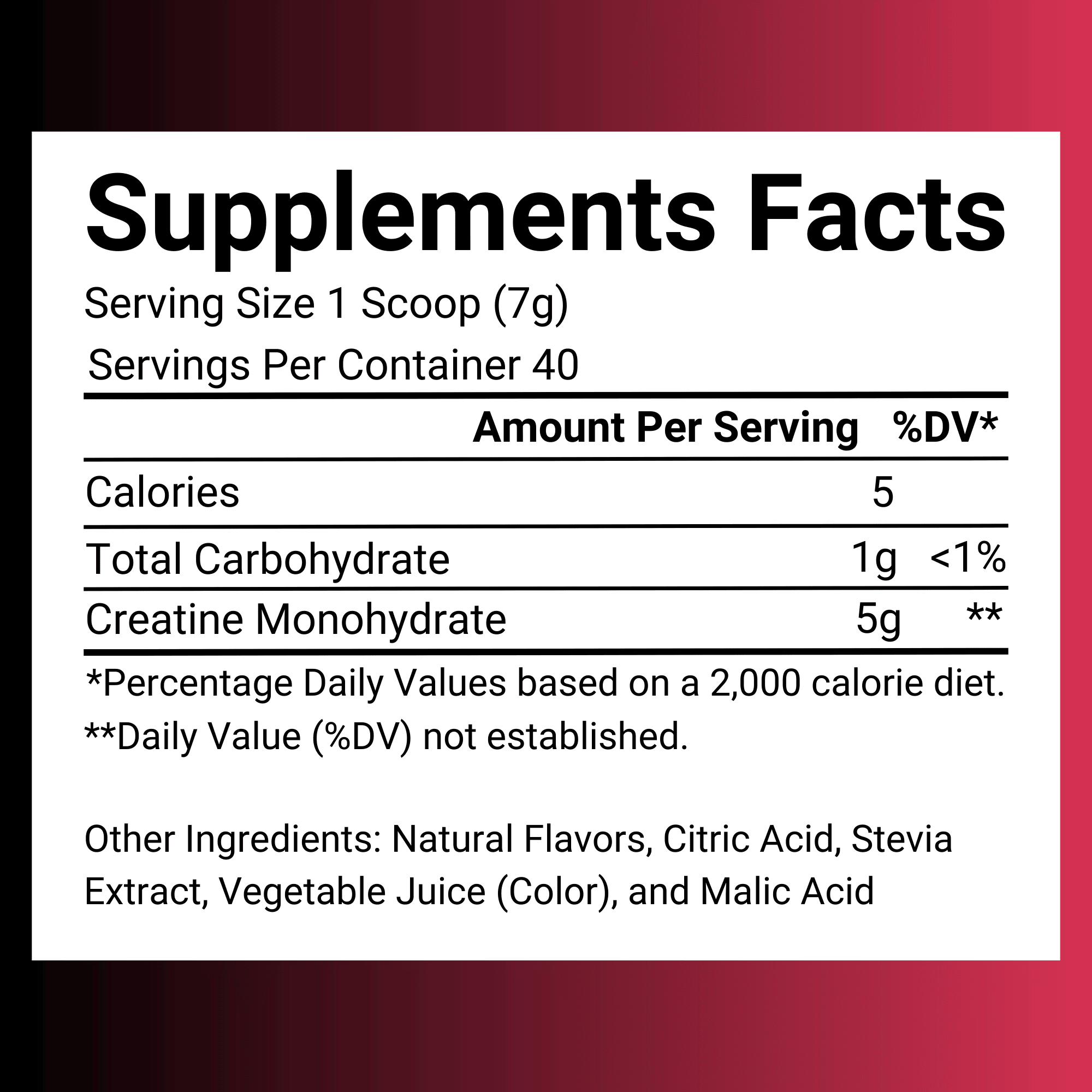 SweetCre supplement facts
